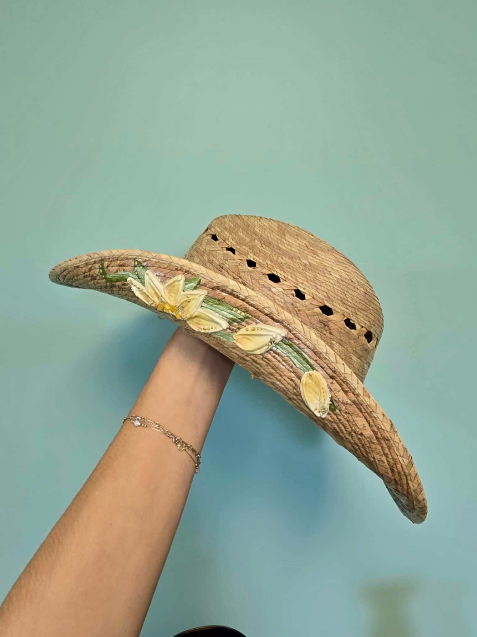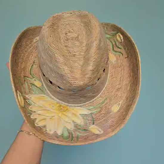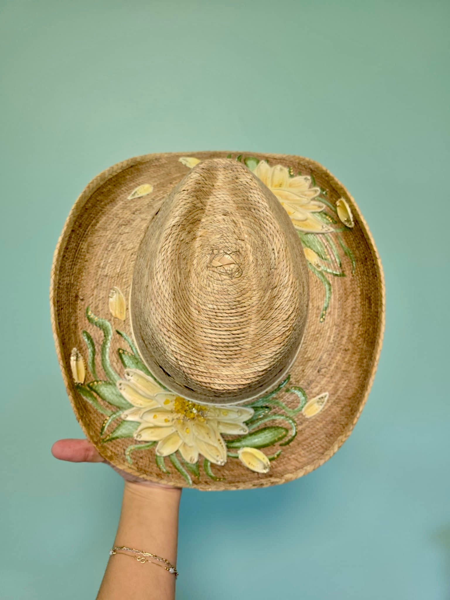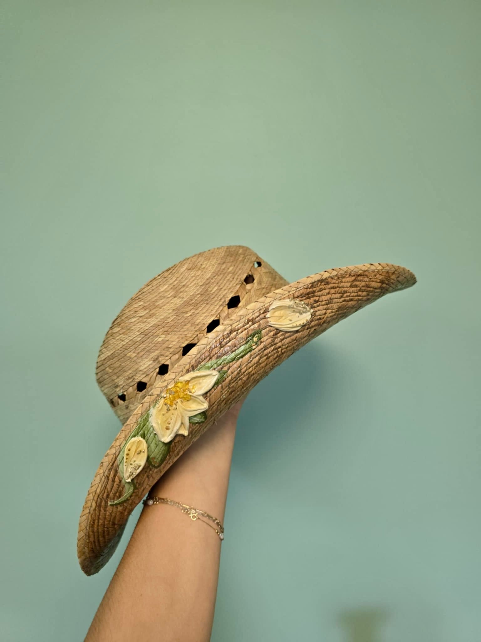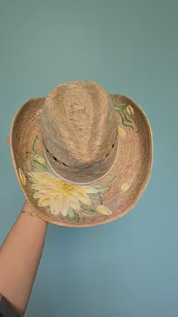 Hand-painted, palm straw perfection with a 3.5โ brim to keep it shady where it counts.